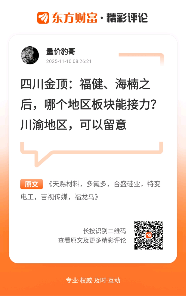 //@量价豹哥 :四川金顶:福健、海楠之后,哪个地区板块能接力?川渝地区,可以留意 $兰石重装(SH603169)$$亿晶光电(SH600537)$$平潭发展(SZ000592)$