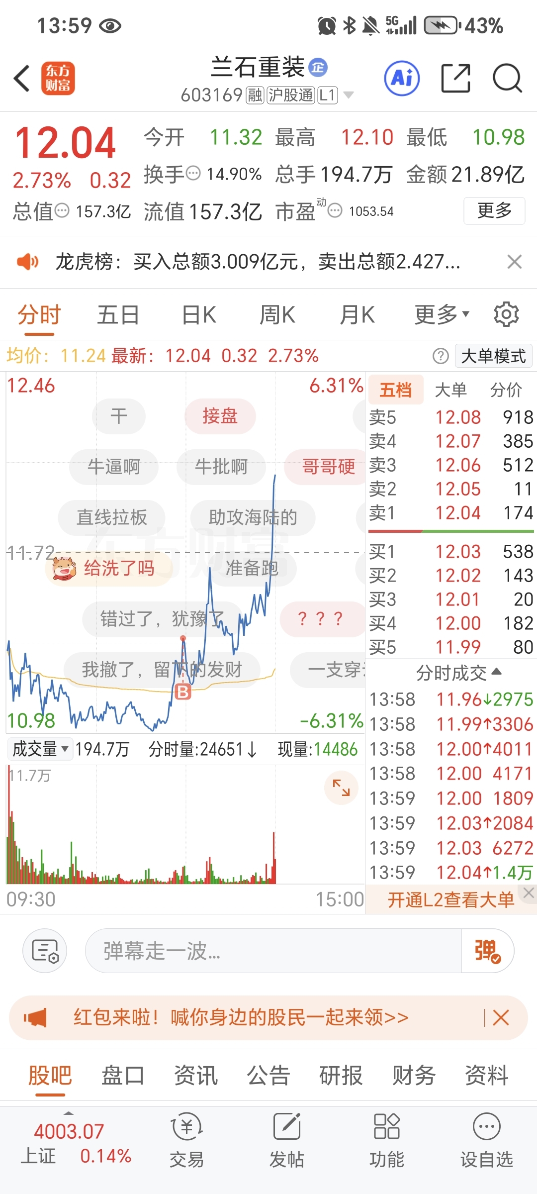 $兰石重装(SH603169)$ 哈哈,赌徒