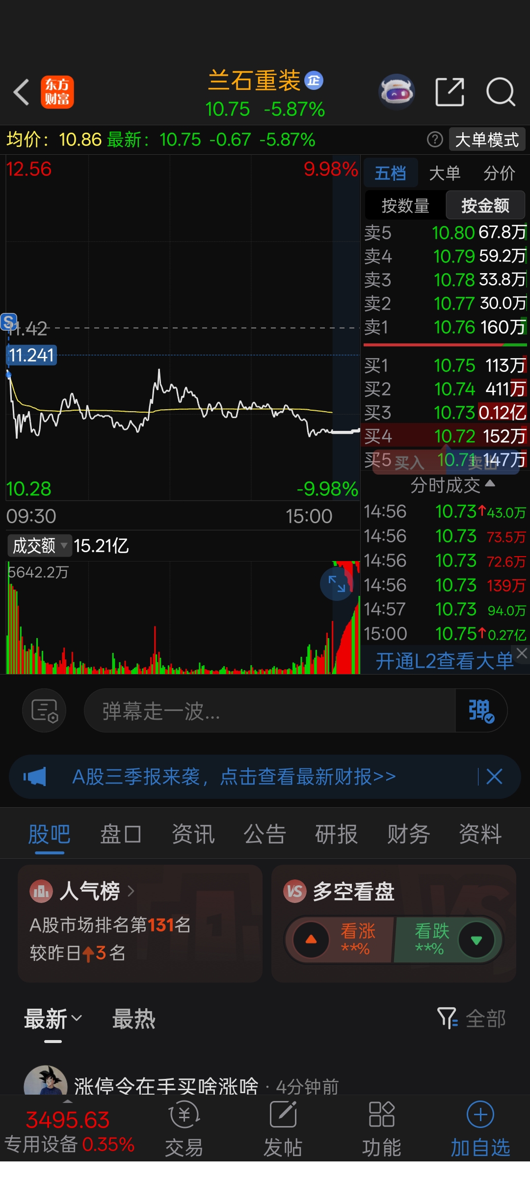温馨提示: 1.根据《证券法》规定,禁止编造、传播虚假信息或者误导性信息,扰乱证券市场;2.用户在本社区发表的所有资料、言论等仅代表个人观点,与本网站立场无关,不对您构成任何投资建议。用户应基于自己的独立判断,自行决定证券投资并承担相应风险。《东方财富社区管理规定》