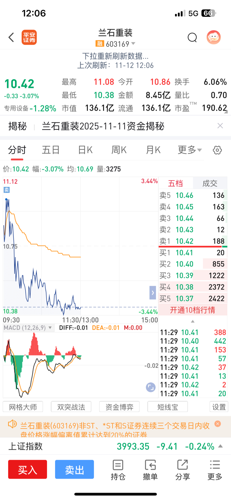 $兰石重装(SH603169)$ 兄弟我昨天10.72进的,今天11狠心了,小赚3700,今天留下来好好吃面,收盘前再进去。