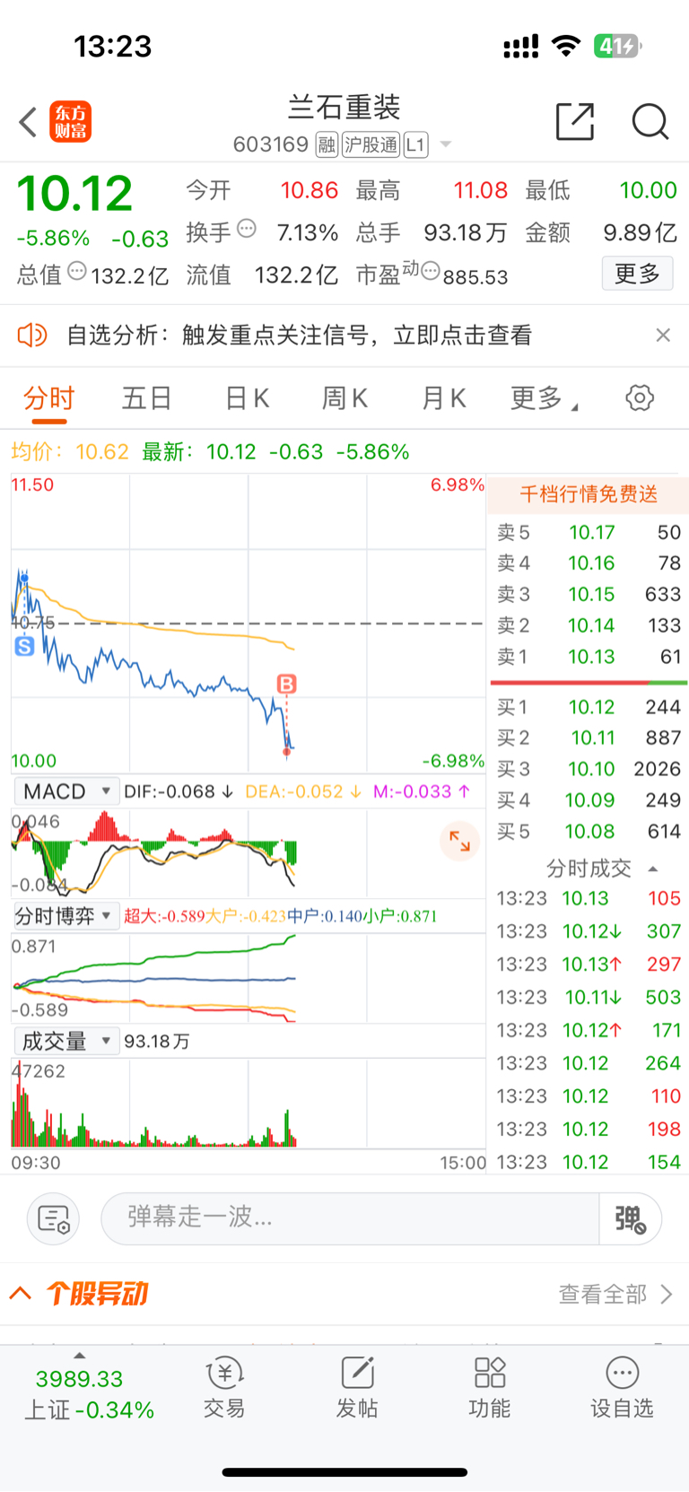 $兰石重装(SH603169)$ 到了防守位置,没技术的不要跟。