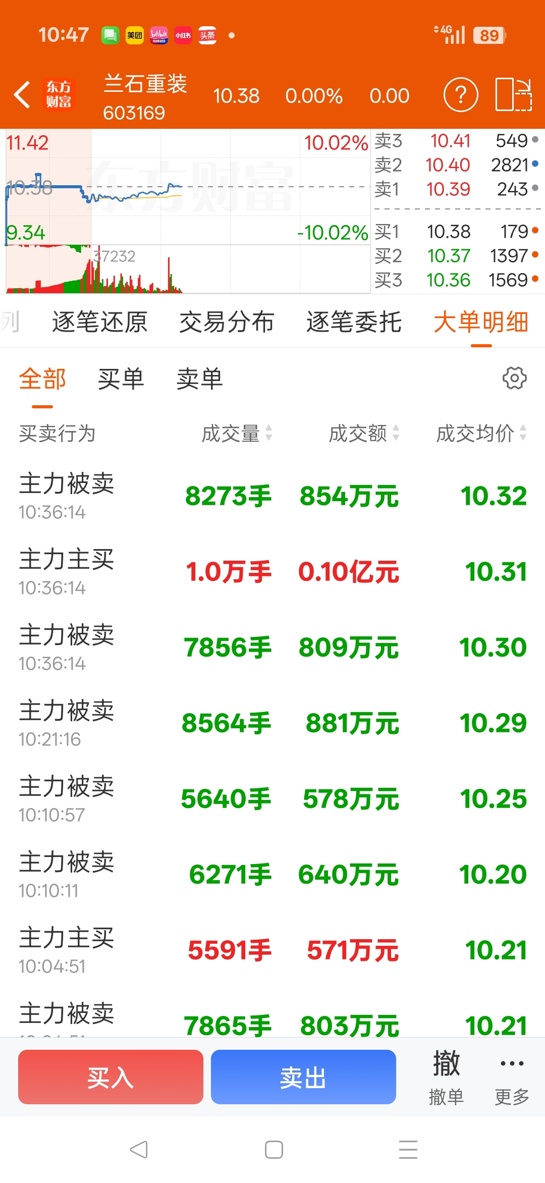 $兰石重装(SH603169)$ 看清楚了什么叫诱多,老庄自己的挂单自己吃掉对倒,该多出了货