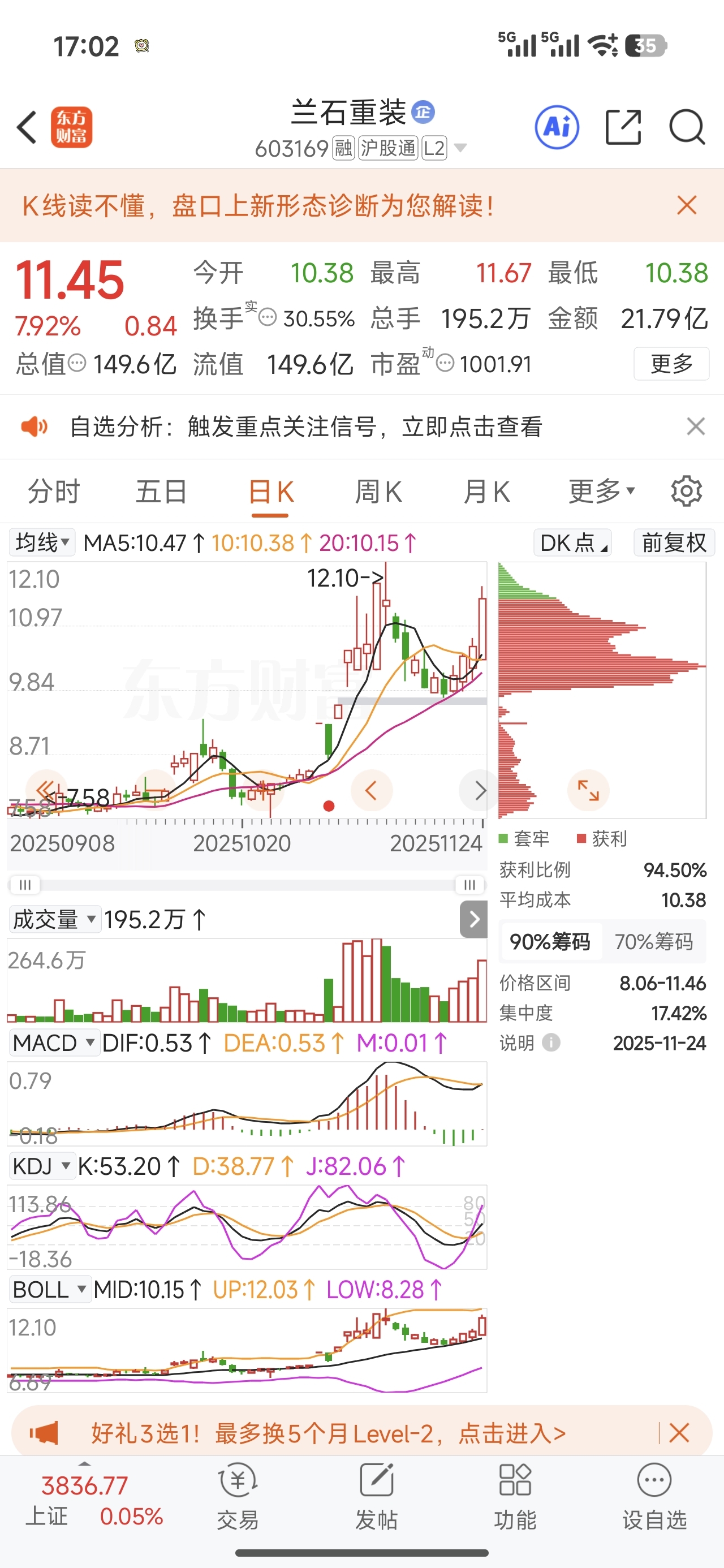 $兰石重装(SH603169)$ 这不老鸭头嘛形成了已经