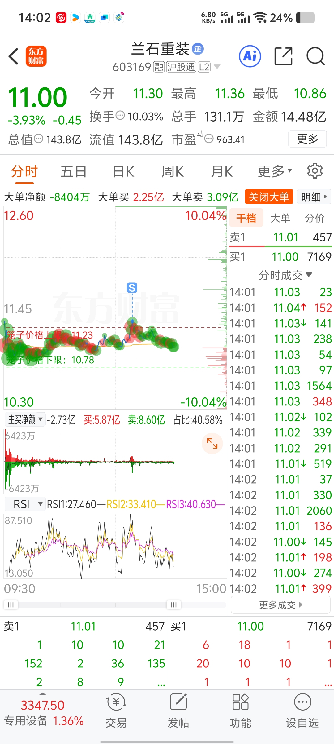 $兰石重装(SH603169)$ 昨天买家今天就给他处理掉