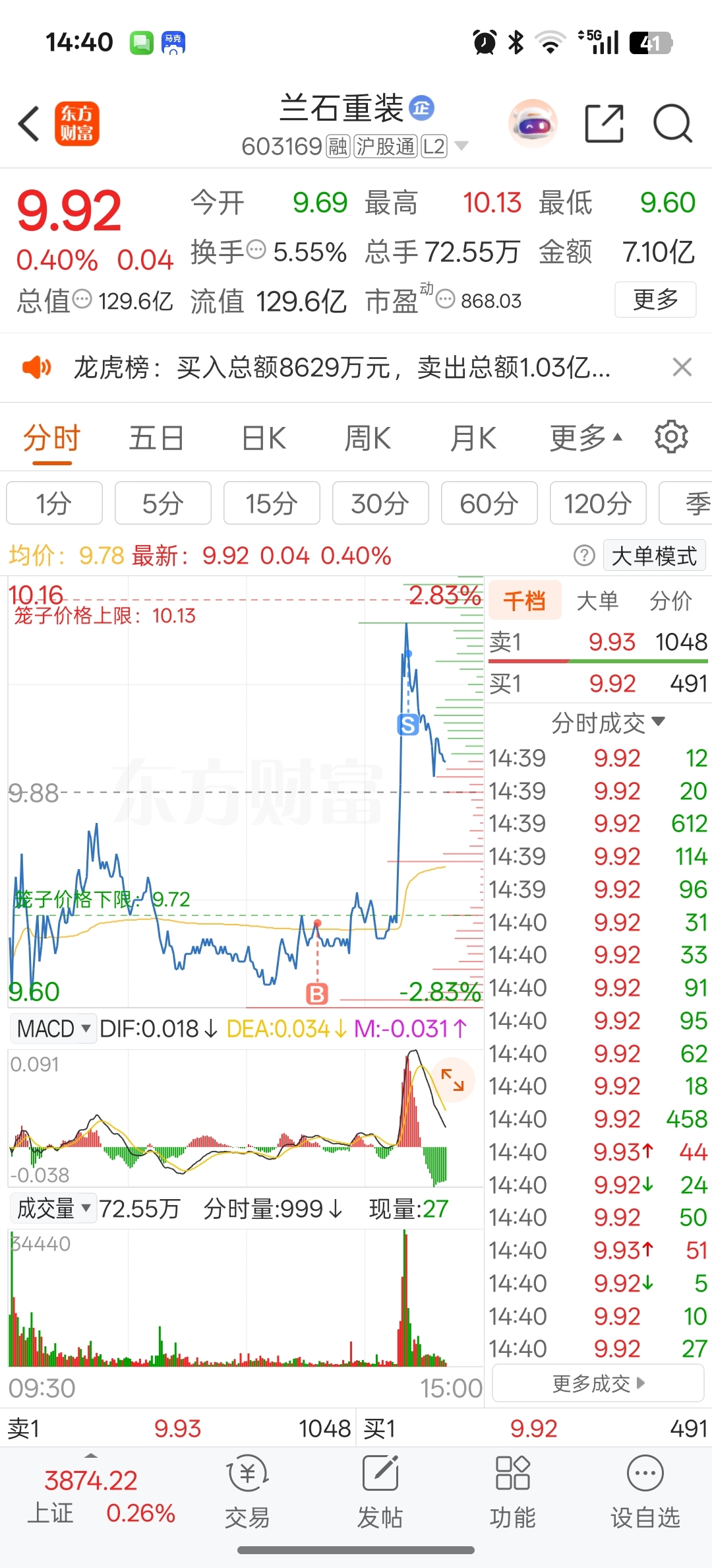 $兰石重装(SH603169)$ 不拉尾盘还好,一拉明天又废了