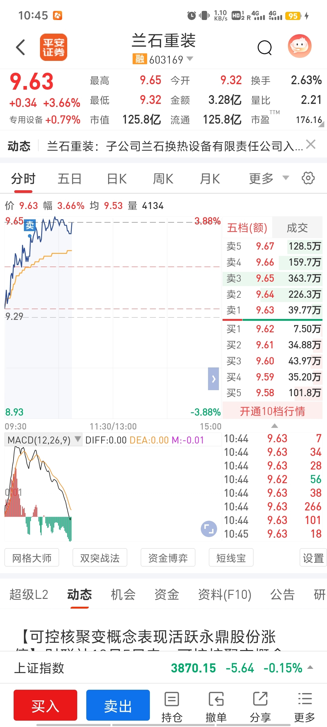 $兰石重装(SH603169)$ 清仓,保本!不亏就是赢
