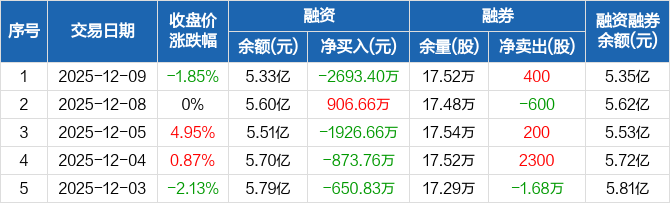 兰石重装:融资净偿还2693.4万元,融资余额5.33亿元(12-09)