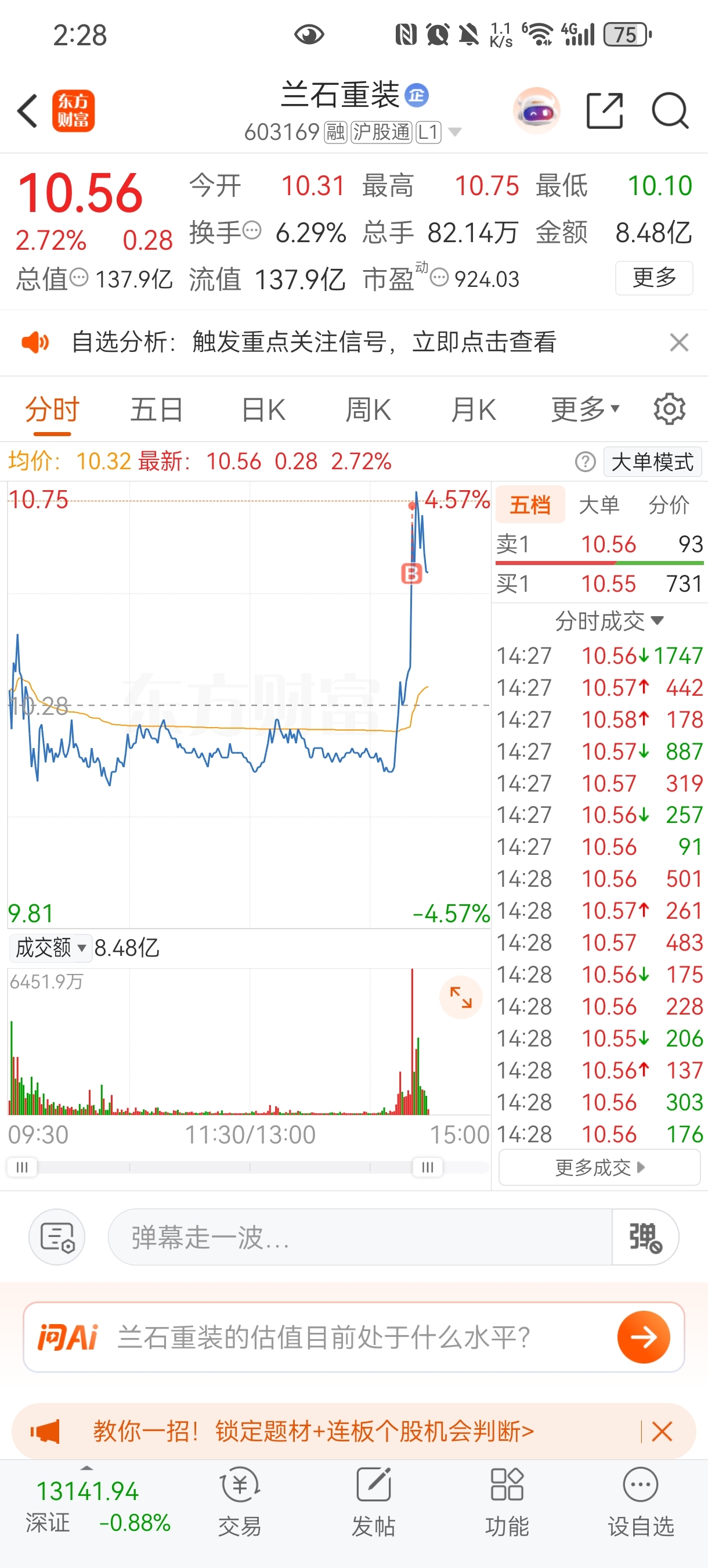$兰石重装(SH603169)$ 挂上了