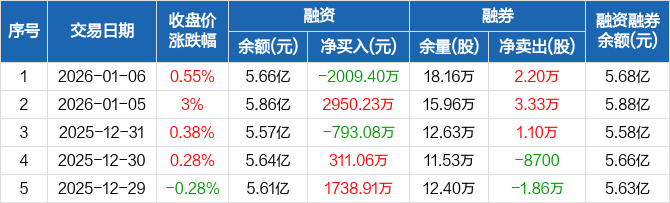 兰石重装:融资净偿还2009.4万元,融资余额5.66亿元(01-06)