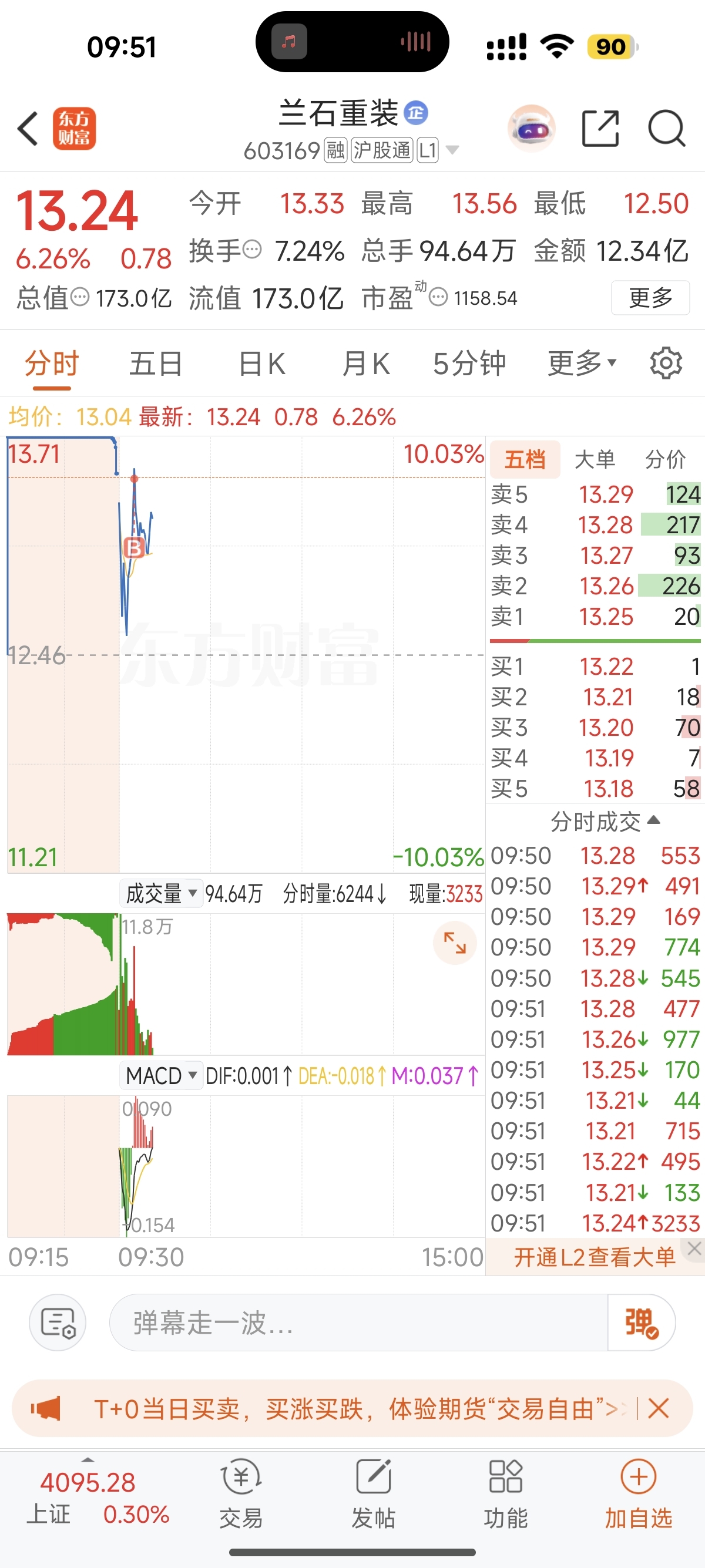 $兰石重装(SH603169)$ 嘲讽我把,以后再也不打一进二了