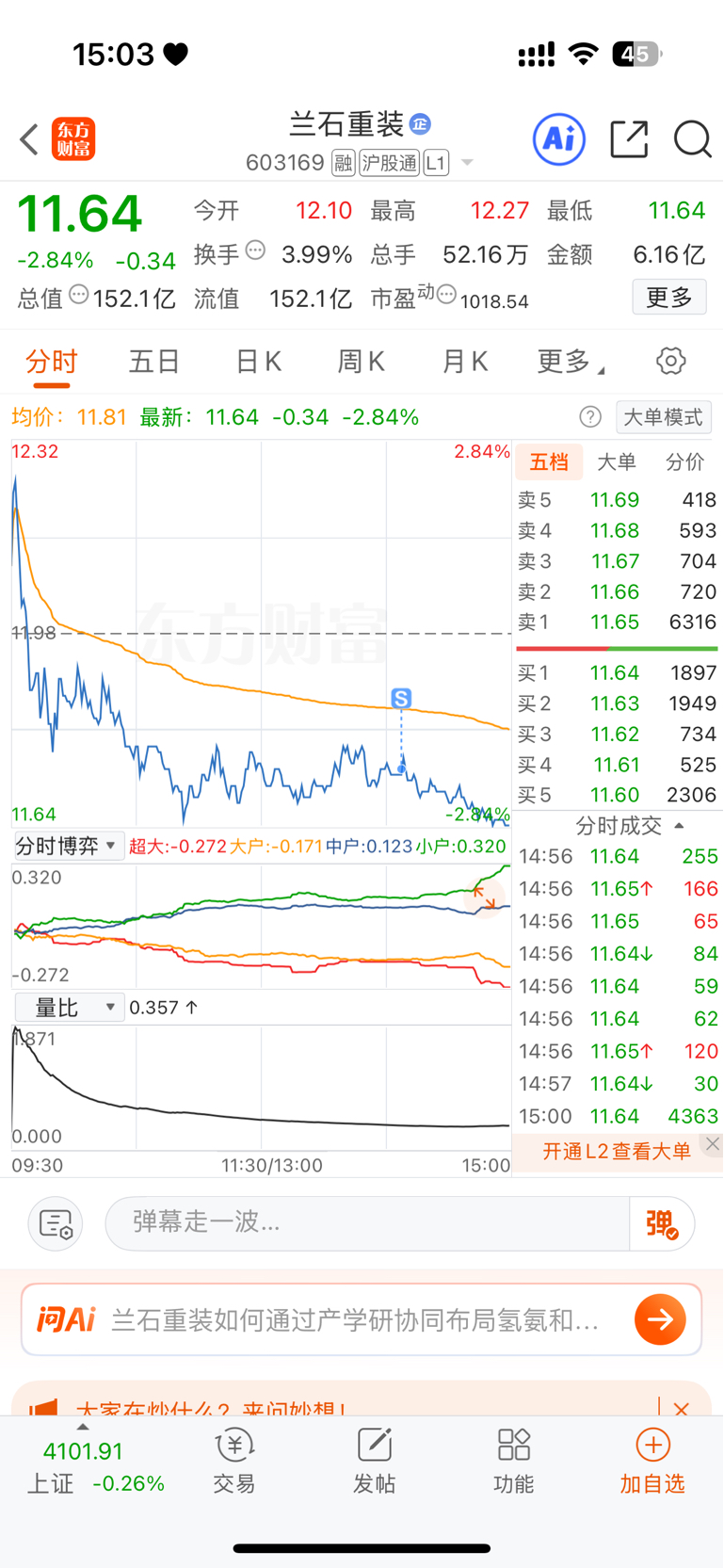 $兰石重装(SH603169)$ 留下的发财,亏了我十四个点 我割肉了,已删除此股。