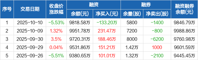 税友股份:融资净偿还133.2万元,融资余额9818.58万元(10-10)
