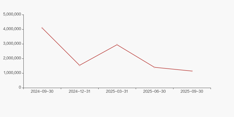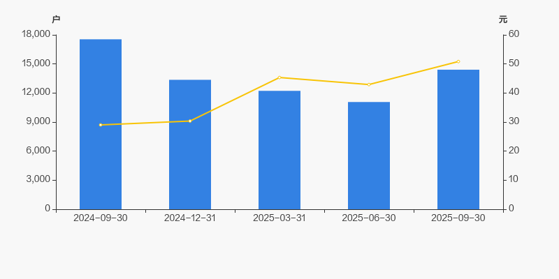 截至2025年9月30日,公司最新流通股本为4.06亿股。户均持有流通股数量由上期的3.67万股下降至2.82万股,户均流通市值143.22万元。