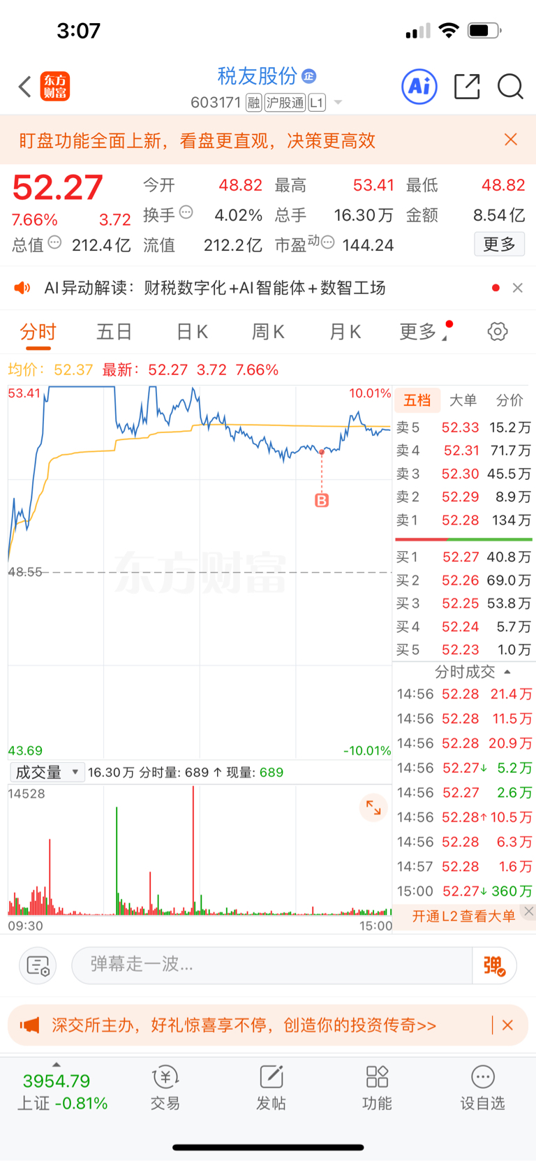 $税友股份(SH603171)$ 哎,还加仓了,炸板反包多得是,问题是这量能?周一有点难搞啊!