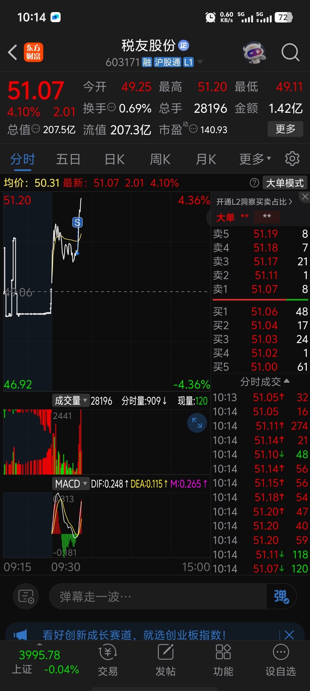$税友股份(SH603171)$ 我的卖点是涨的信号吗?一买就跌,一卖就涨