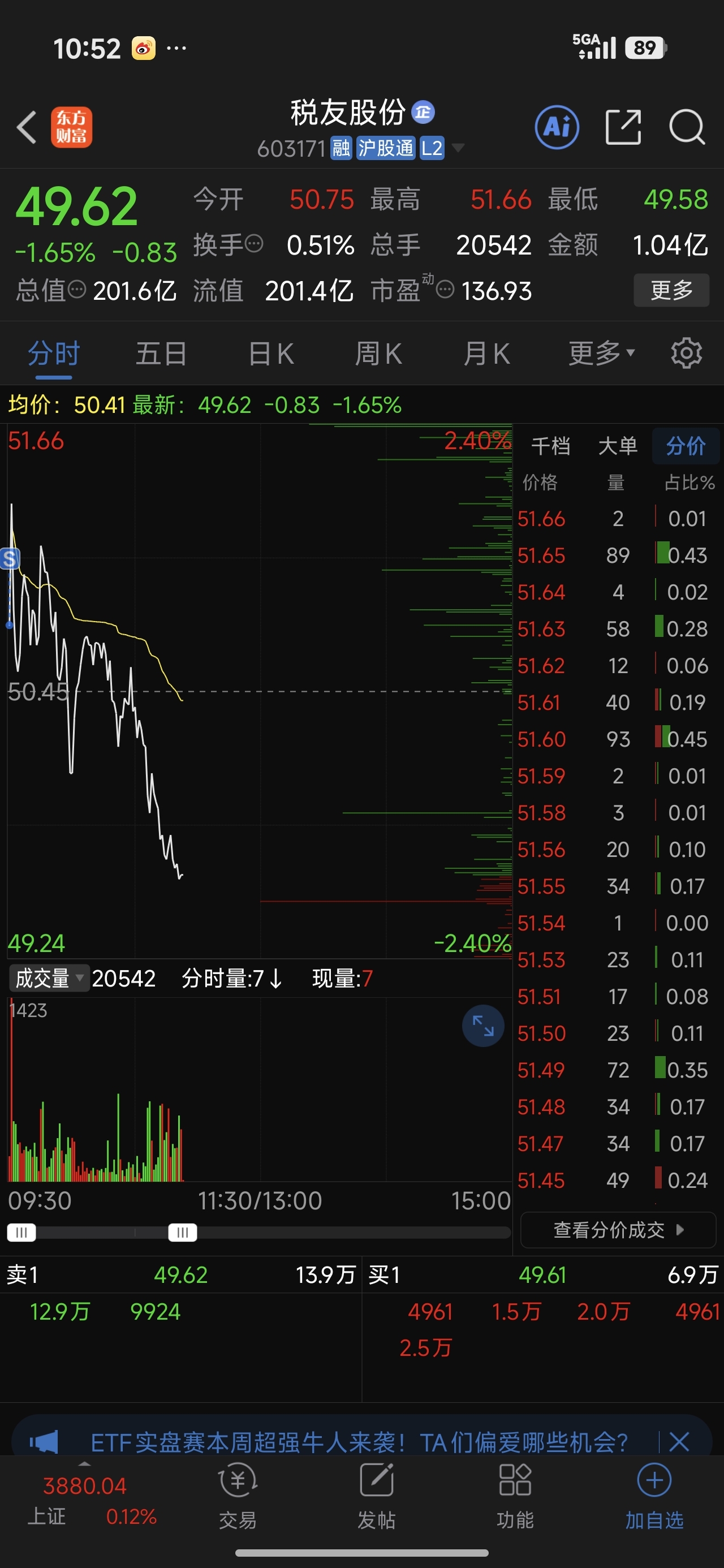 $税友股份(SH603171)$ 这个拉几,没意思走了