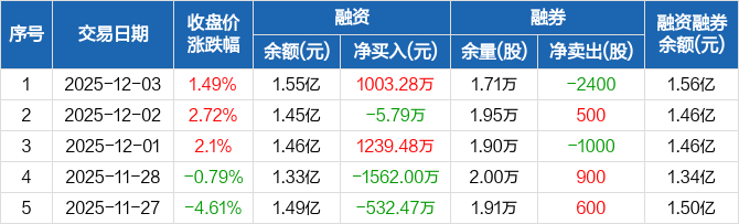 税友股份:融资净买入1003.28万元,融资余额1.55亿元(12-03)