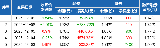 税友股份:融资净偿还58.63万元,融资余额1.73亿元(12-09)