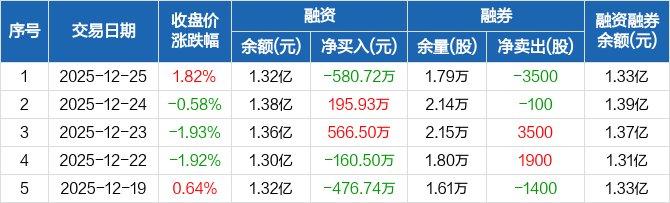 税友股份:融资净偿还580.72万元,融资余额1.32亿元(12-25)
