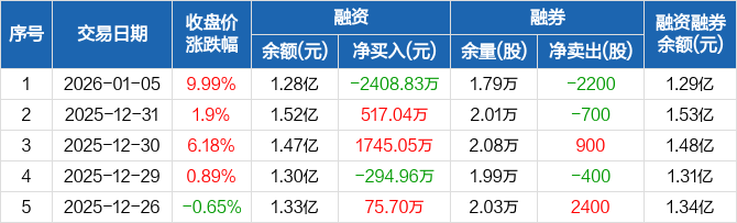 税友股份:融资净偿还2408.83万元,融资余额1.28亿元(01-05)