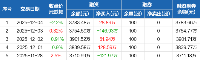 万丰股份:融资净买入28.89万元,融资余额3783.48万元(12-04)