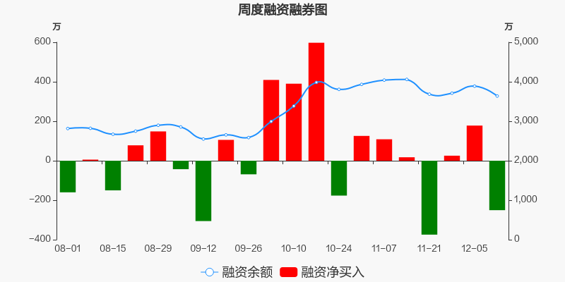 万丰股份本周(2025/12/08-2025/12/12)累计跌幅达5.53%,截至12月12日最新股价报收17.41元。从增量上来看,12月8日至12月12日融资买入交易规模853.43万元,融资偿还规模1103.86万元,期内融资净偿还250.43万元。从存量上来看,截止12月14日,万丰股份融资融券余额3638.85万元,其中融资余额规模3638.68万元,融券余额规模1741元。