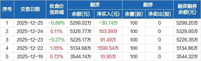 万丰股份:融资净偿还30.74万元,融资余额5299.02万元(12-25)