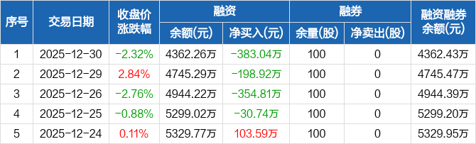 万丰股份:连续4日融资净偿还累计967.51万元(12-30)