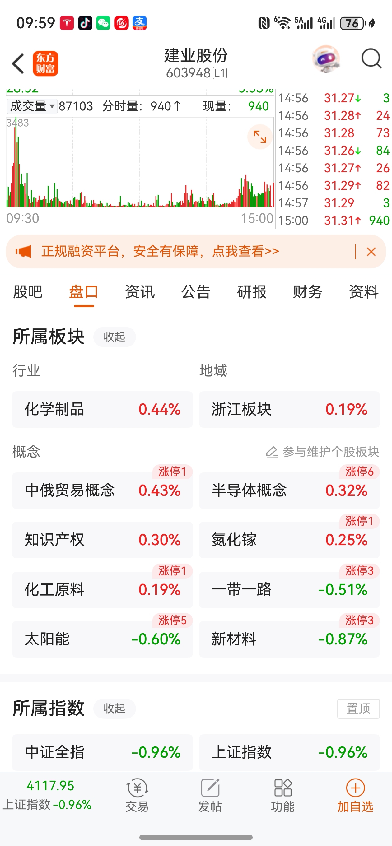 $建业股份(SH603948)$ 化工原料+半导体+太阳能+氮化镓+新材料+中俄贸易+浙江+微小盘(3净苏)
