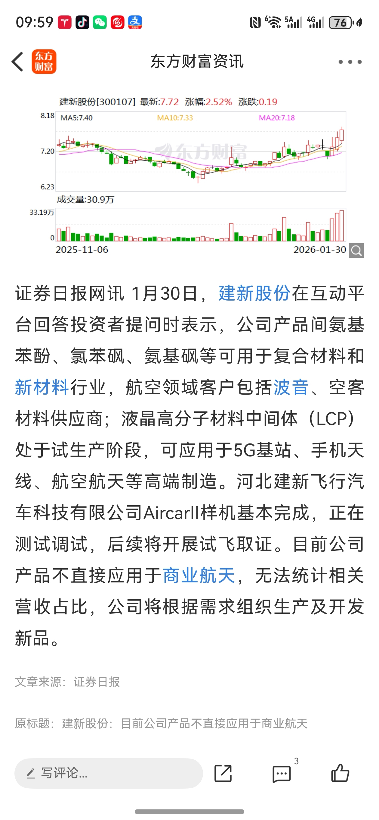 $建新股份(SZ300107)$ 化工原料+飞行汽车+低空+商业航天+河北+微盘股(三净入)