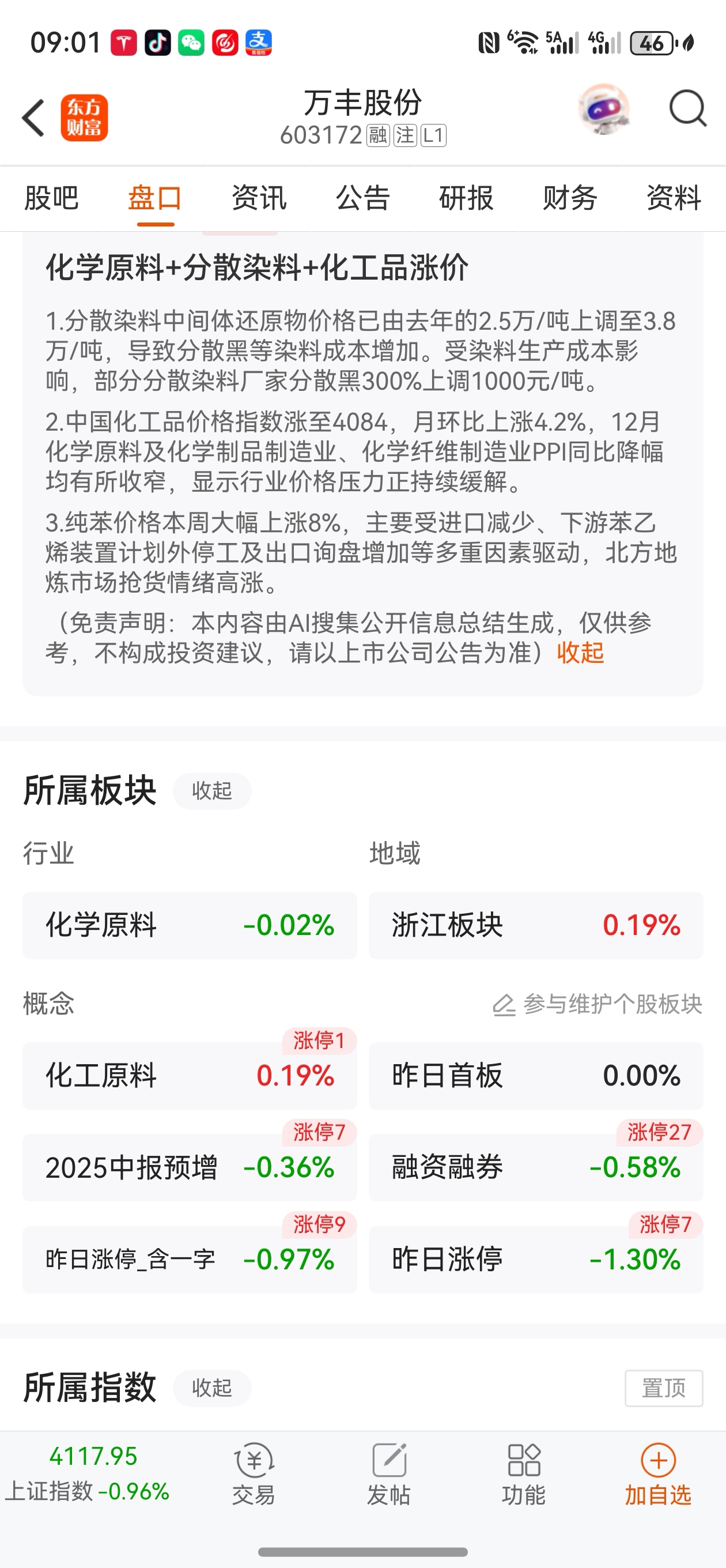 $万丰股份(SH603172)$ 微小盘股+化学原料+化工涨价+浙江