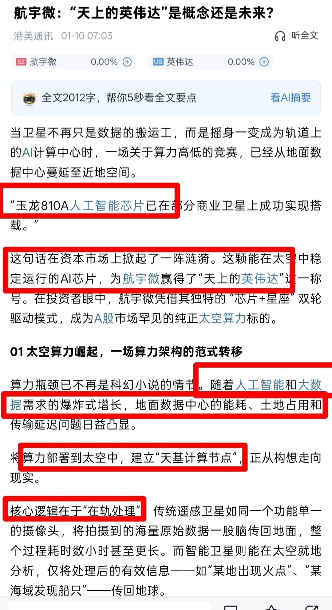 国家太空算力基建20万颗卫星都要用这航宇微玉龙810太空算力芯片:航宇微联合航天8所研制:太空AI智能机器人(搭载玉龙810太空算力芯)横空出世, 抢占太空分秒必争,价值重估万亿市直-追赶美国-洛克菲勒马丁(太空采矿霸主-航宇微联合航天5所,采集月壤嫦娥五号嫦娥六号) 国内唯一抗辐射算力芯片:航宇微自主研发的玉龙810A宇航级AI芯片及SIP模块,已应用于航天科技集团下属院所(如2所、3所、4所、11所等)的星箭测控、导航及星务系统,提供抗辐射、高可靠的核心算力支持。公司通过国产化存储器研制及进入国家航天目录化,为航天体系内单位提供符合太空极端环境要求的芯片产品,推动宇航电子国产化进程。自主研发的遥感卫星智能化在轨处理系统(FPGA+ARM+玉龙810A国内太空唯一算力芯片),已应用于航天科技集团多颗试验卫星,实现遥感数据的实时在轨处理。 航宇微为中科宇航(航天科技,中科院参股)的太空旅游飞行器提供宇航芯片、AI导航算法及遥感数据服务,保障亚轨道飞行的精准控制与安全, 双方在星箭联合设计、发射服务等领域深度合作太空旅游飞行器,航宇微技术将直接服务于载人航天任务。 航宇微宇航级810太空算力芯片和AI算法硬件,参与构建天基算力网络(“太空数据中心”),提升国家太空计算能力。宇航AI芯片在太空机器人、空间站实验设备等领域的应用边界,推动前沿技术落地[7]。。航宇微与航天科技航天8所研制:太空AI智能机器人(玉龙810太空算力芯)横空出世 价值重估万亿市直-追赶美国-洛克菲勒马丁航宇微这货-未来趋势龙头,名副其实的卫星AI芯片-太空算力半导体-航宇微-机构称-太空英伟达+主营低轨卫星发射制造组网23年就计划河北发射100颗卫星,卫星组网技术国内最成熟