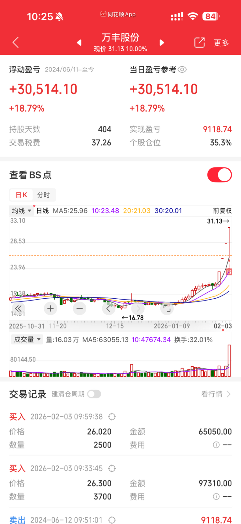 $万丰股份(SH603172)$ 卧槽,我抄底了个地天,今天舒服了