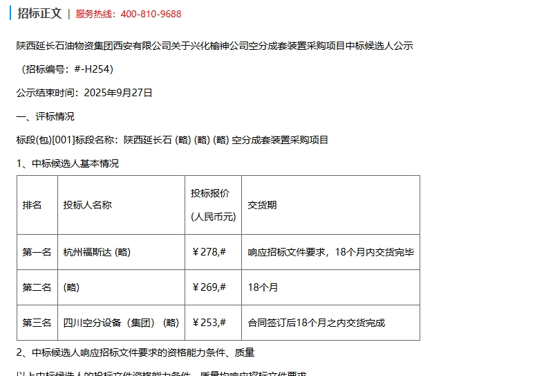 中标陕西石油2.7亿空分项目,居然不公告。国庆第一天涨停了