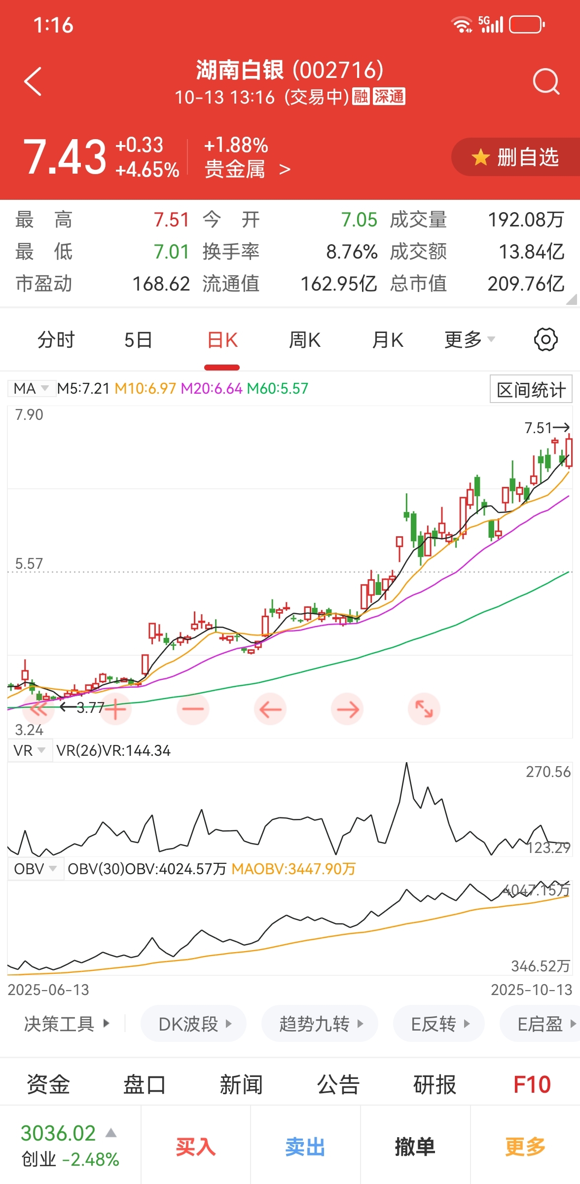 好垃圾哦,怎么跌这么多?好在入湖南白银白色有银