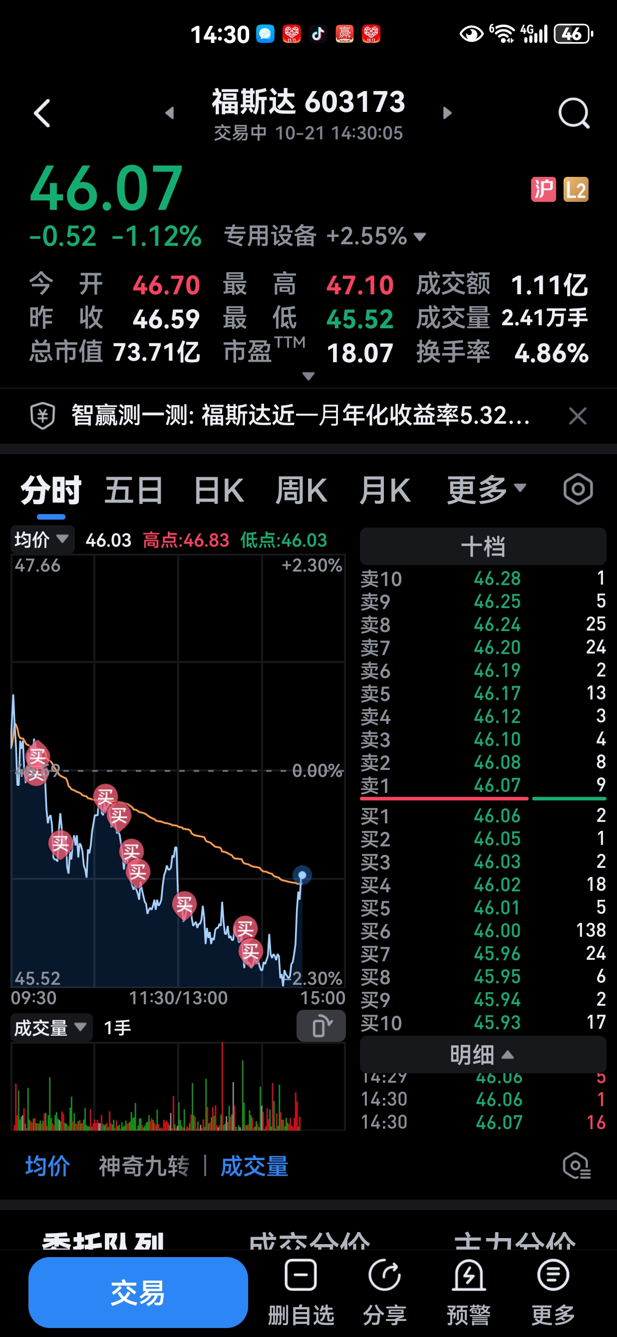 我在福斯达上面,前二次加重仓都没有错,一次在22元,重仓持有,第二次在37元跌到32元时加到重仓,这次在45又是加到重仓,相信又不会错
