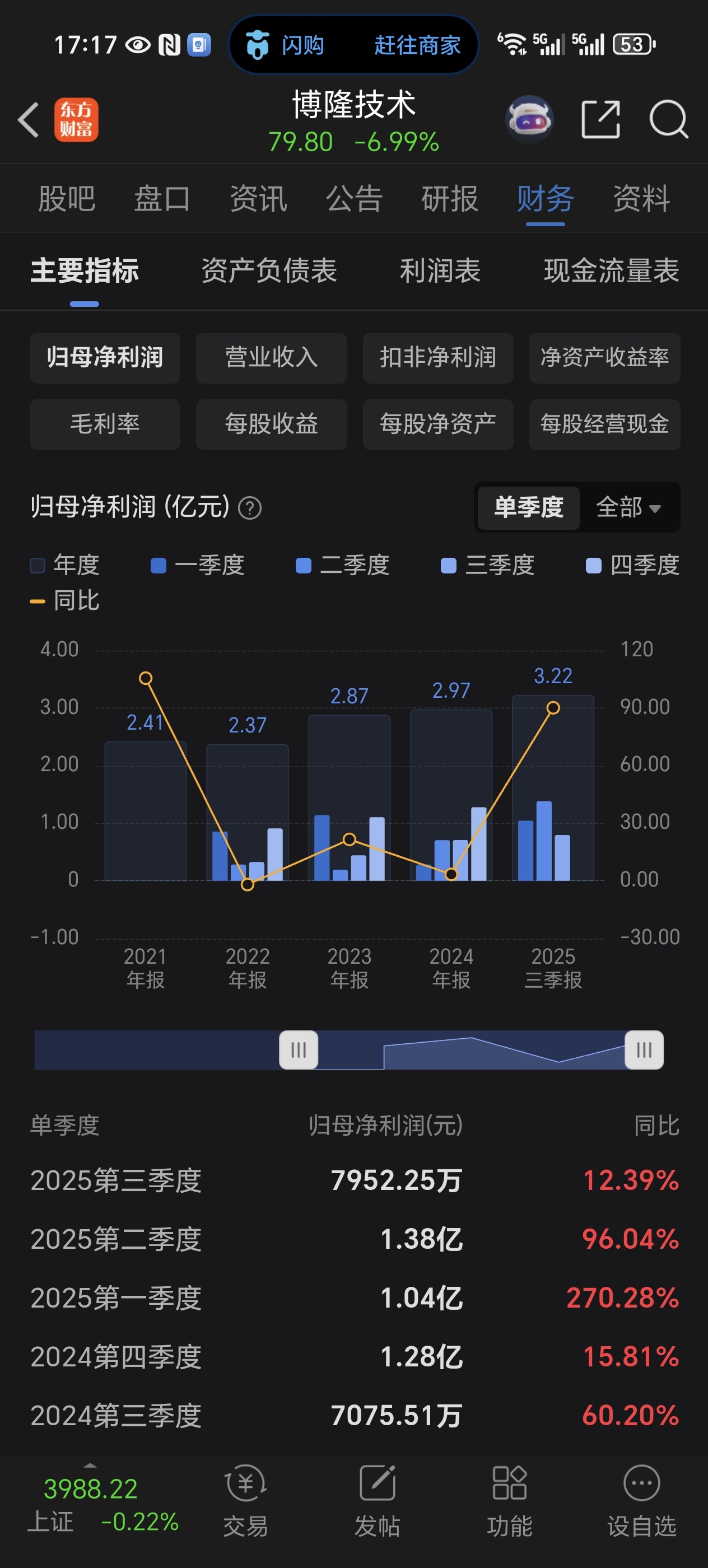 业绩基本上和博隆技术一样,甚至第三季度同比去年还不如博隆技术,博隆技术昨天公布业