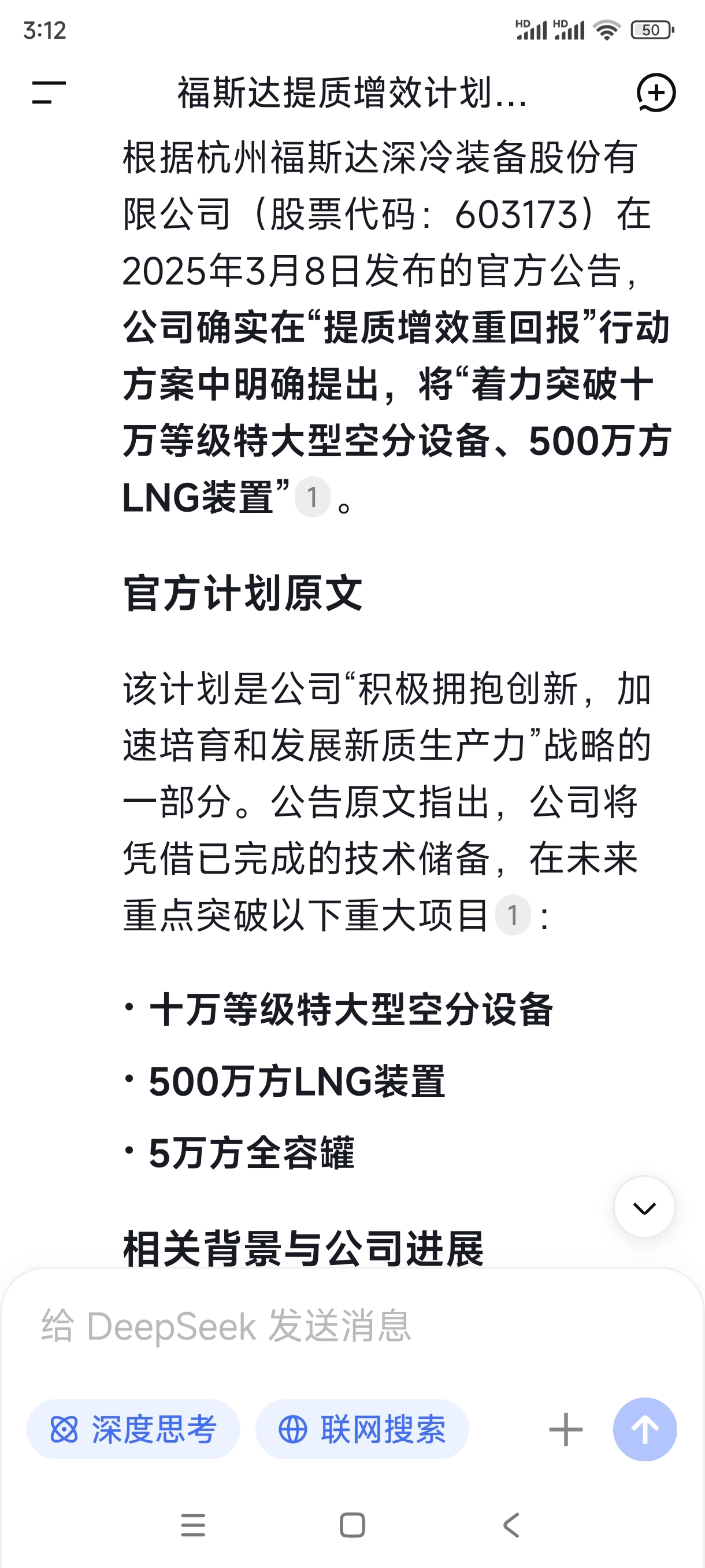 我原来以为公司能搞20万方LNG就很了不起了!至少杭氧和中泰没这能力。现在才发现,20万方LNG对福斯达来说是小菜一碟。500万方