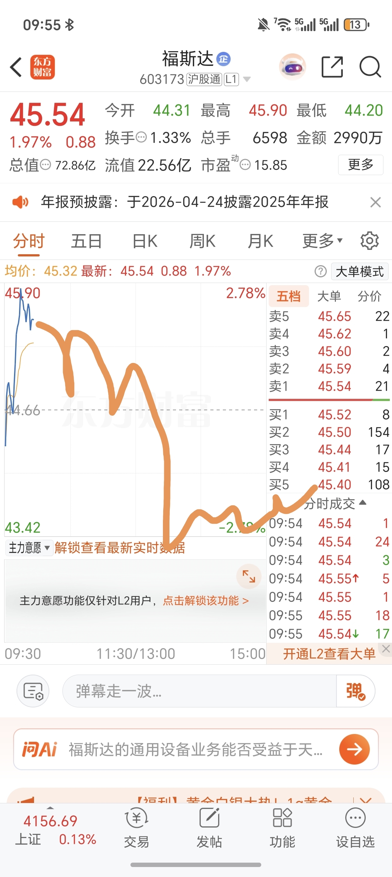 $福斯达(SH603173)$ 今天的走势,咱们拭目以待!