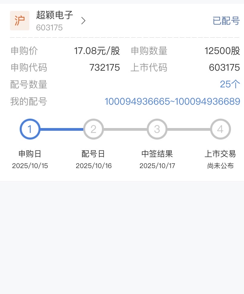 $超颖电子(SH603175)$ 为啥只有25个号,这次还有个6666