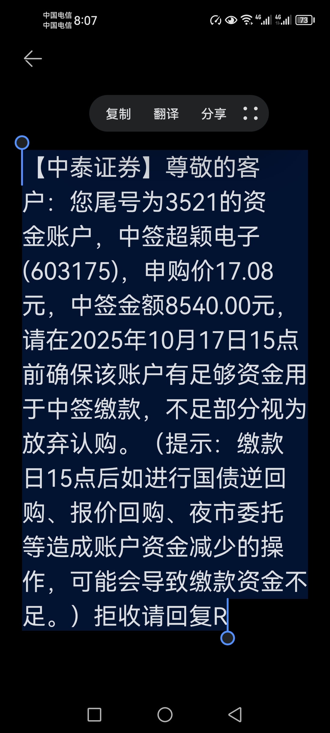 $超颖电子(SH603175)$ 中了,沪市就一个配号还中了
