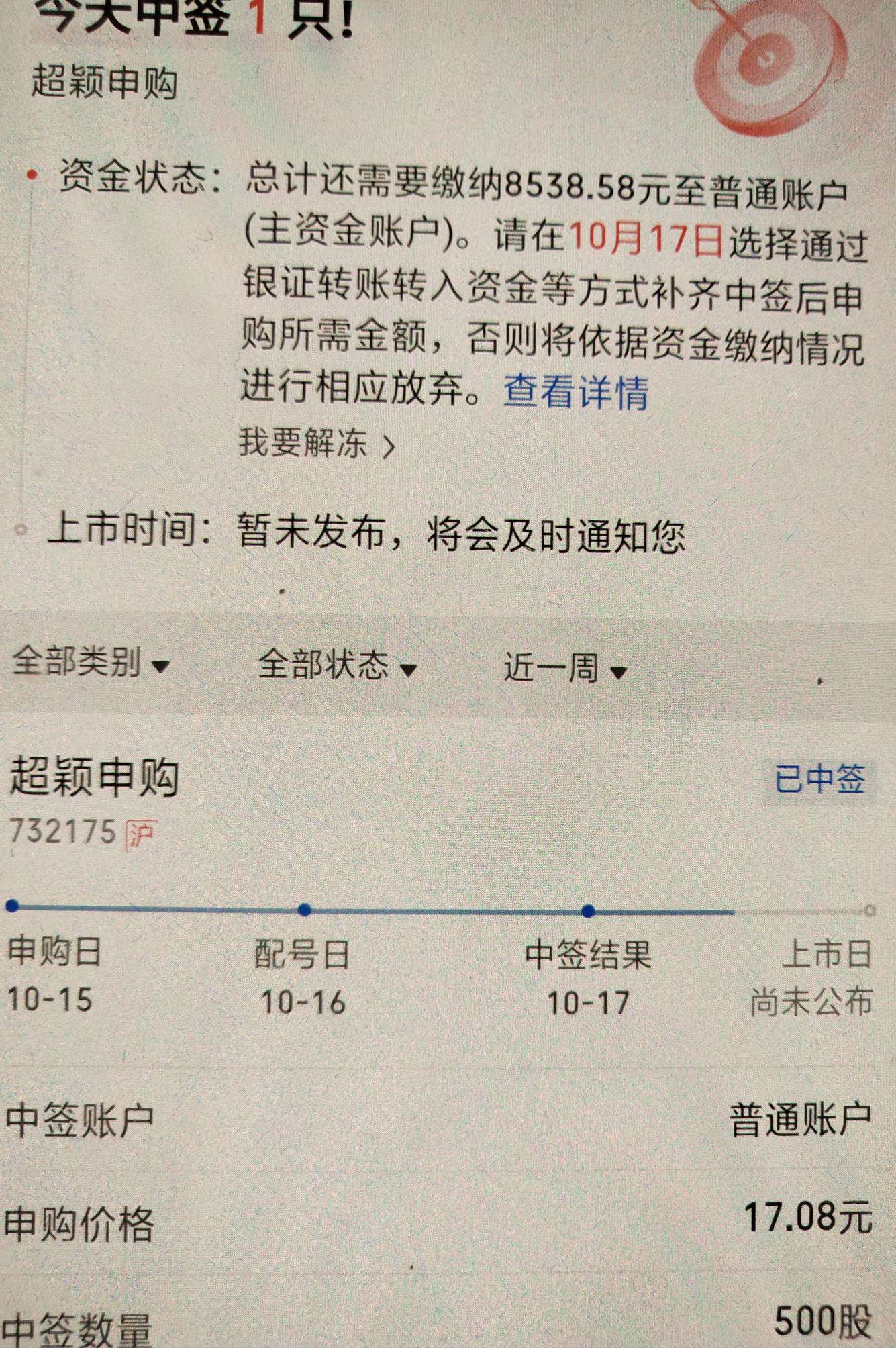 晚上才看到这个,拍照纪念。好事成双,今年一个深圳新股一个上海新股