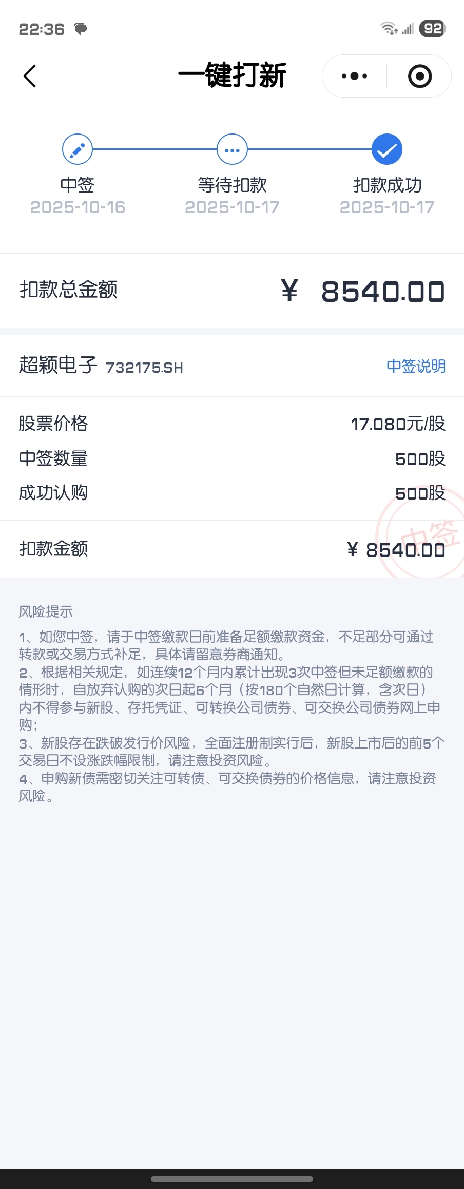 第一次中!请问大神们这是已经成功了吗?持股里没看到数量!谢谢