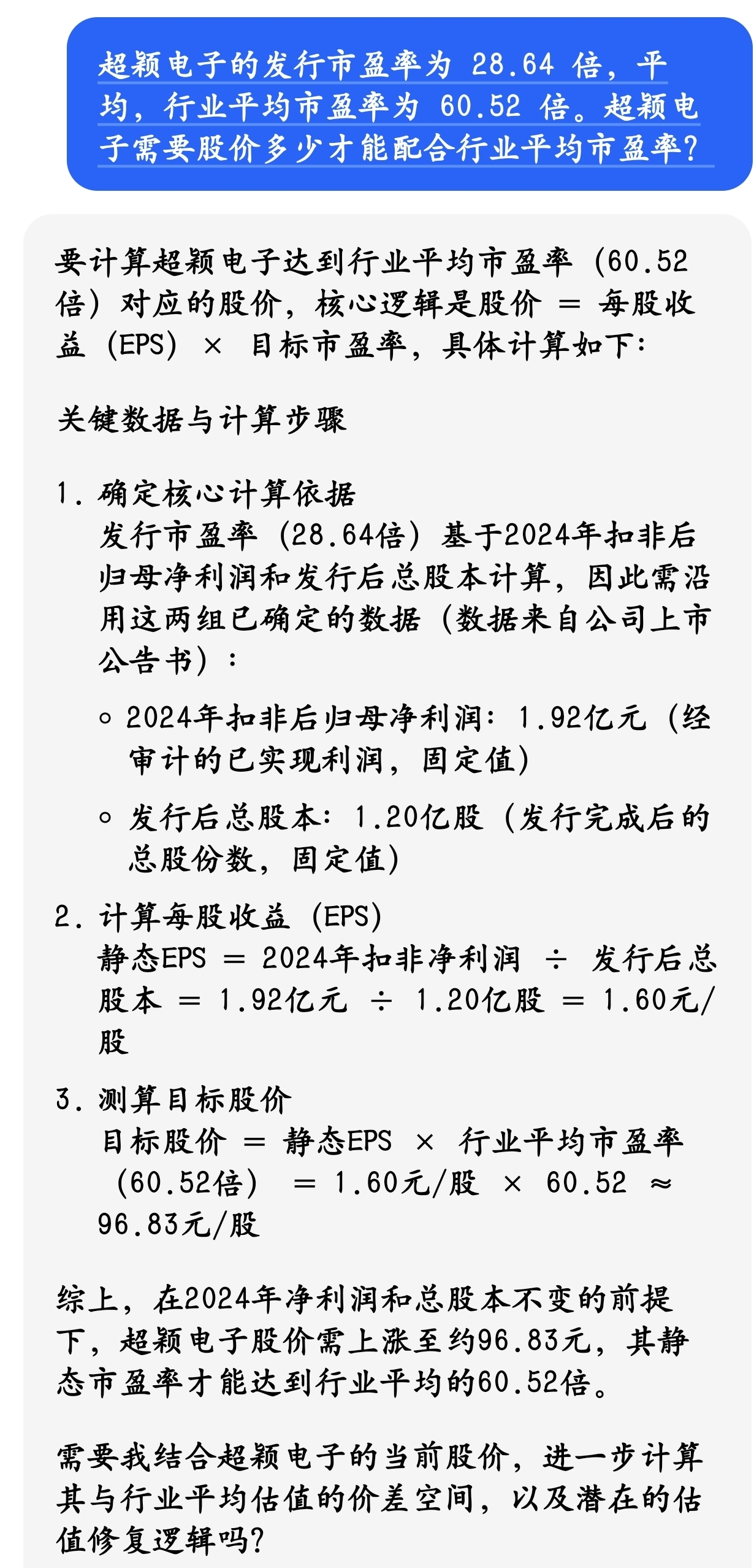达到行业平均市盈率股价为96元,加上牛市和整体的溢价,翻一倍应该属于正常,170元应该属于正常