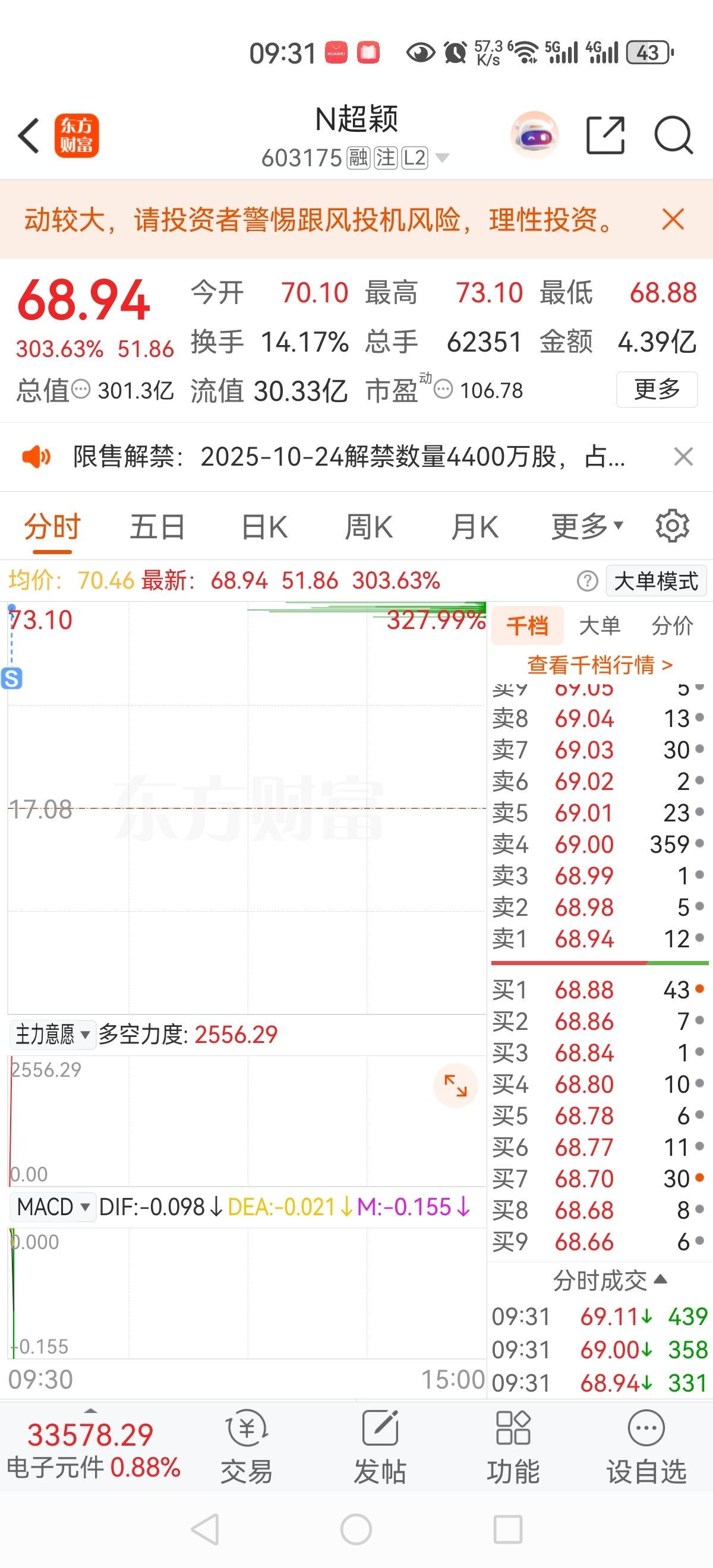 $N超颖(SH603175)$ 最高点卖了,你们玩吧。收益近三万。知足了