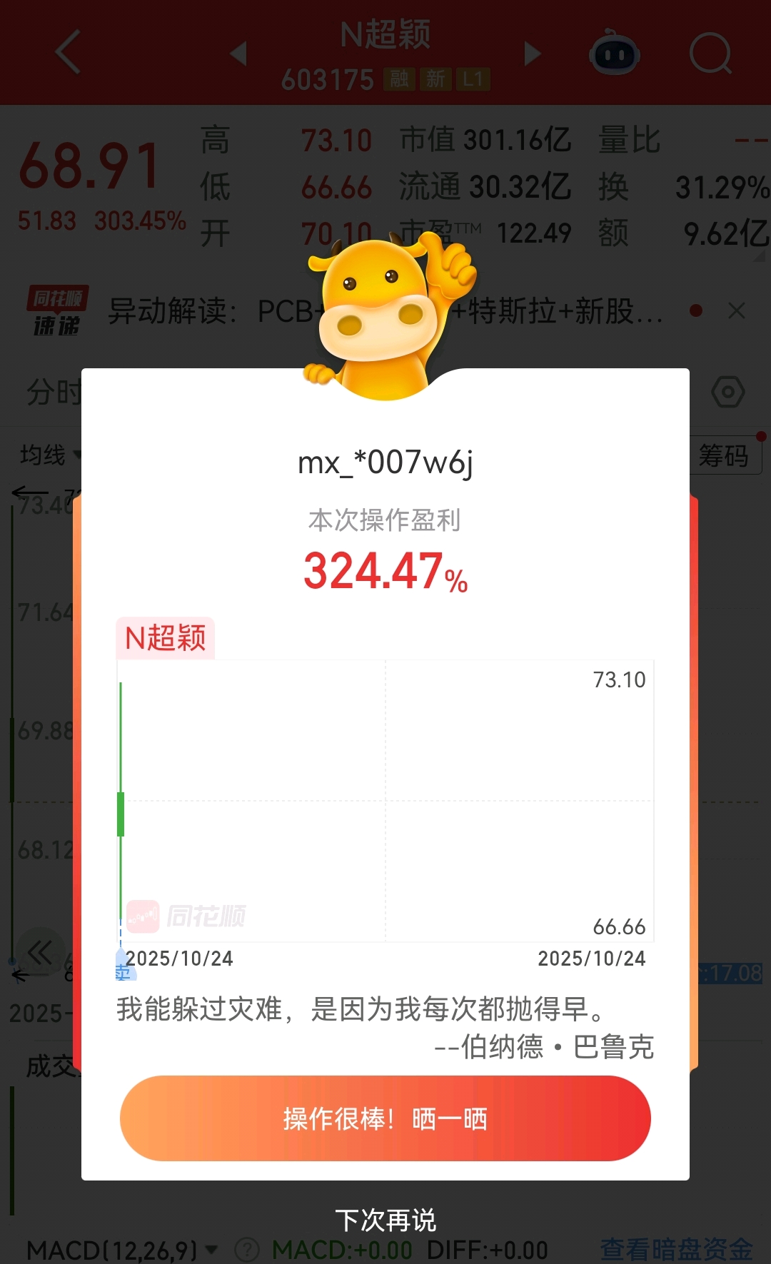 $N超颖(SH603175)$ 卖了,希望等下不会后悔