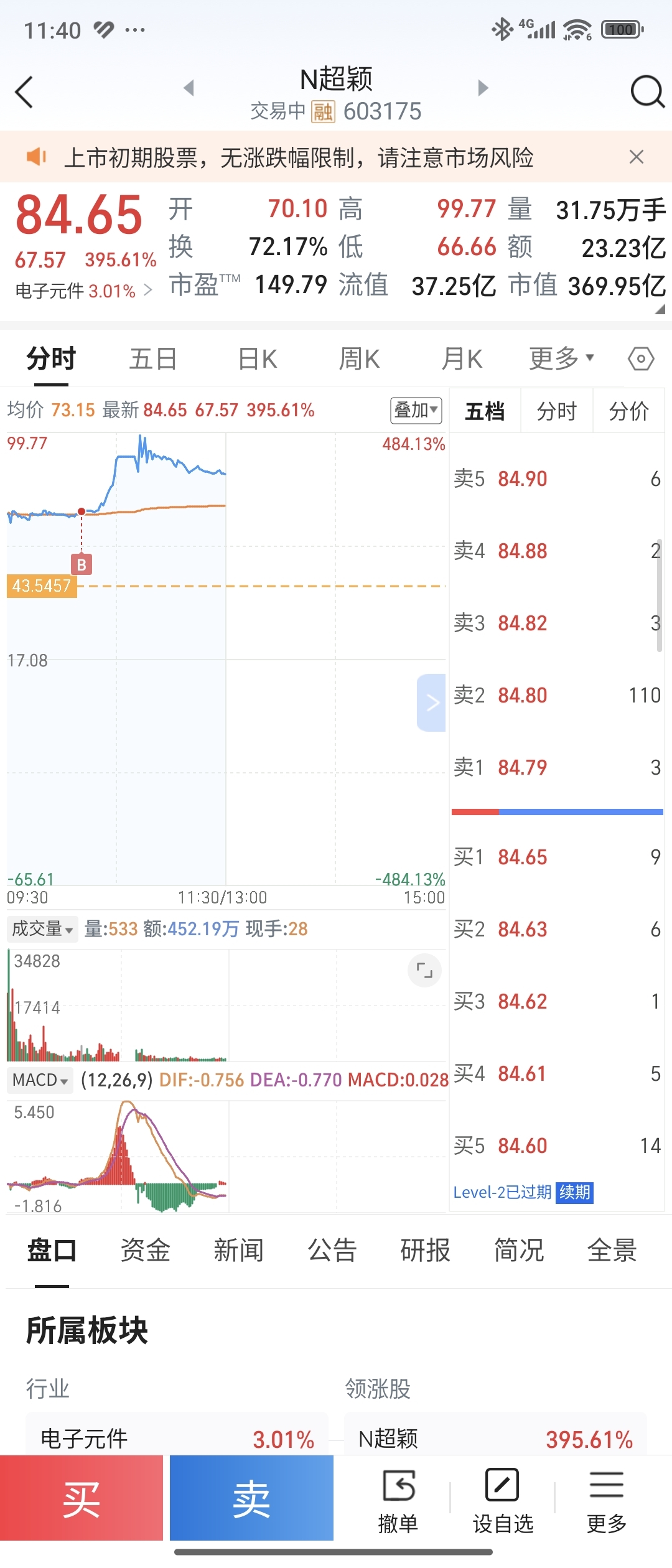 $N超颖(SH603175)$ 我的500股没卖呢,70块钱又补了半仓进去,哎,我这赌性太强了,得控制