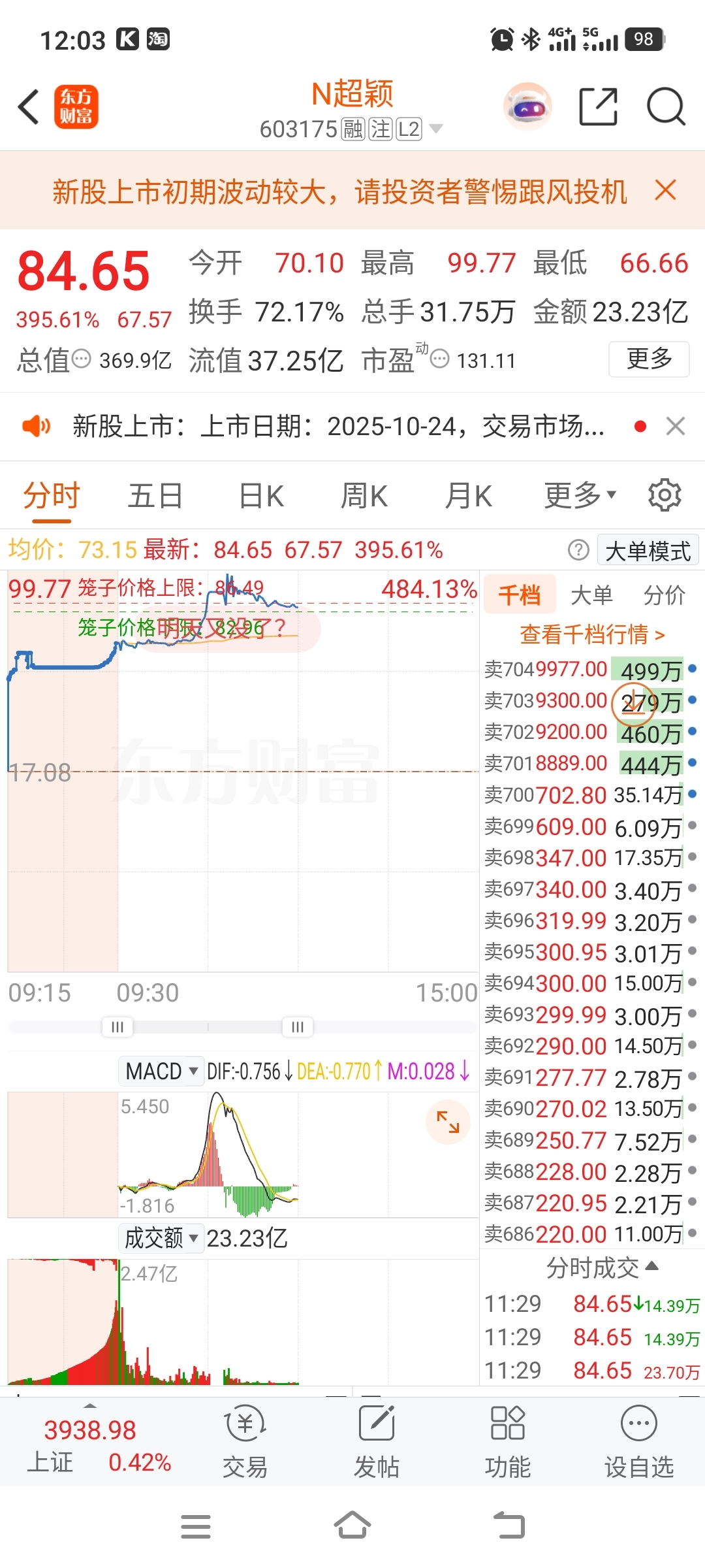 $N超颖(SH603175)$ 下午干10个亿进去。整到200