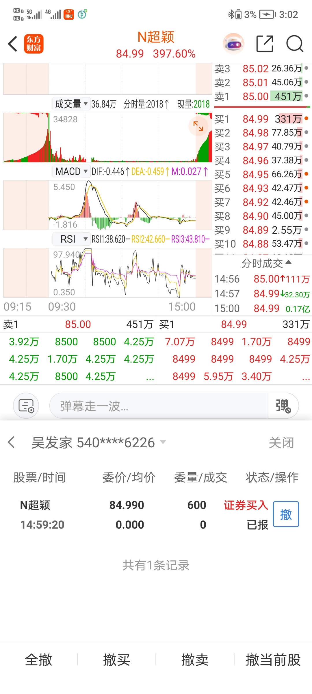 $N超颖(SH603175)$ 咋会没买进呐,挂的太低了吗