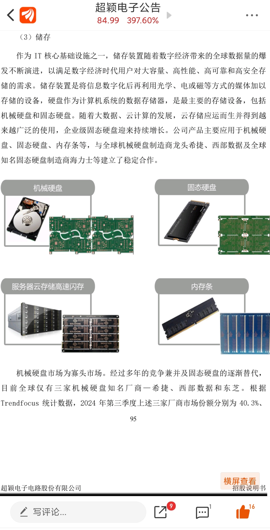 $N超颖(SH603175)$ 超颖电子拥有量产的DDR4和DDR5内存制造技术,和存储芯片巨头海力士合作,目前服务器手机电脑内存涨价最多的就是这两种内存芯片,惊喜的是还有机器人机械臂制造技术;超颖电子拥有量产的服务器云存储高速闪存主板制造技术,AI云服务带来的服务器云存储需求高速增长对超颖电子是重大利好,并且超颖电子的存储业务24年就已经超过3亿,还在快速增长中